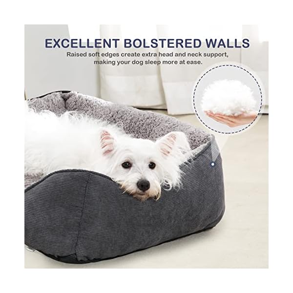 【Comfort Cuddler Design】The raised rim of the rectangular dog bed provides head and neck support. While creating a safe and relaxing space that satisfies the dog’s various curl up sleeping positions. Low leading edge design is for easy step-in.